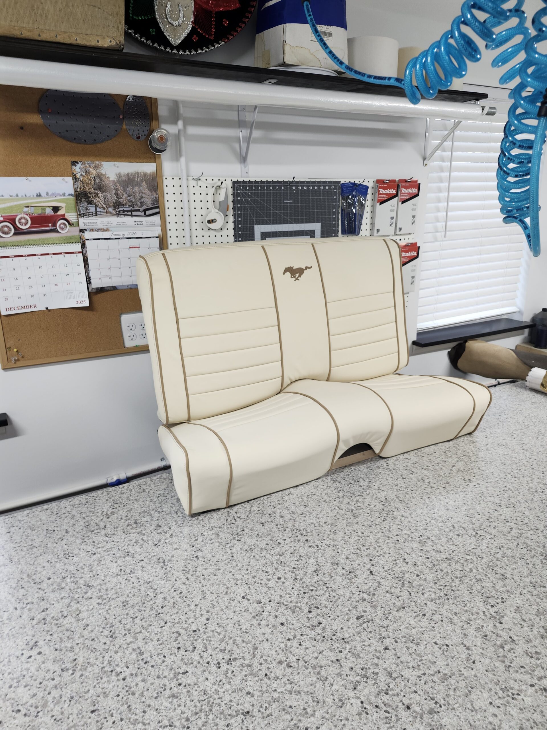 A critical first step in any reupholstery interior ford mustang 1966 with leather project is addressing the 60-year-old frames. We strip the seats to the bare metal to check for structural fatigue or broken springs. To support the new leather, we utilize high-density, multi-layer foam to restore the “Pony” seat profile while adding modern lumbar support.